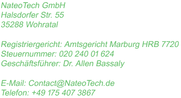 Durch den Einsatz von Cookies kann die NateoTech GmbH den Nutzern dieser Internetseite nutzerfreundlichere Services bereitstellen, die ohne die Cookie-Setzung nicht möglich wären.